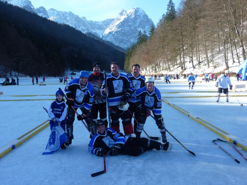 veranstaltet den ersten offiziellen Pond Hockey Cup auf dem Riessersse in Garmisch-Partenkirchen.